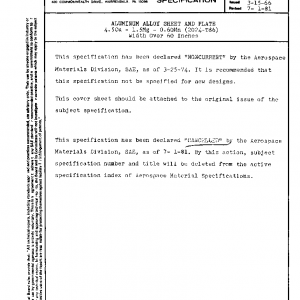 Aluminum Alloy, Sheet and Plate 4.5cu 1.5mg 0.60mn (2024-T86) Width Over 60 Inches(Cancelled Dec 2002)