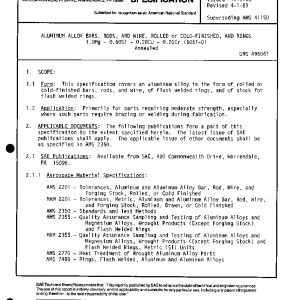 This specification covers an aluminum alloy in the form of rolled or cold-finished bars, rods, and wire, of flash welded rings, and of stock for flash welded rings.