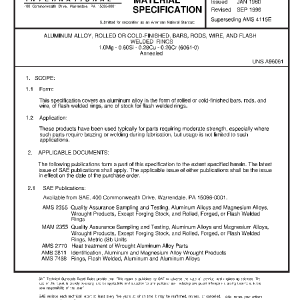 ALUMINUM ALLOY, ROLLED OR COLD-FINISHED, BARS, RODS, WIRE, AND FLASH WELDED RINGS 1.0Mg – 0.60Si – 0.28Cu – 0.20Cr (6061-0) Annealed