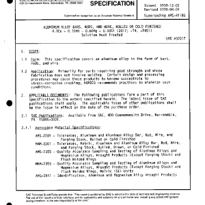 ALUMINUM ALLOY BARS, RODS, AND WIRE, ROLLED OR COLD FINISHED 4.0Cu – 0.70Mn – 0.60Mg – 0.50Si (2017; -T4, -T451) Solution Heat Treated