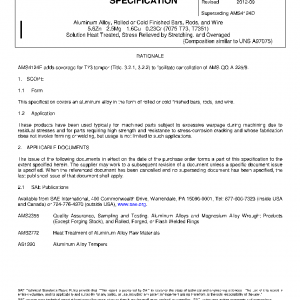 Aluminum Alloy, Rolled or Cold Finished Bars, Rods, and Wire 5.6Zn – 2.5Mg – 1.6Cu – 0.23Cr (7075-T73, T7351) Solution Heat Treated, Stress Relieved by Stretching, and Overaged