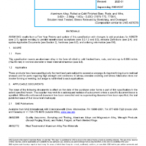 This specification covers an aluminum alloy in the form of rolled or cold-finished bars, rods, and wire up to 6.000 inches (152.40 mm) in nominal diameter or least nominal dimension (see 8.6).