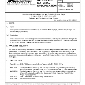 Aluminum Alloy Die Forgings, and Rolled or Forged Rings 0.9Si – 0.62Mg – 0.25Cr (6151-T6) Solution and Precipitation Heat Treated