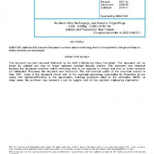 Aluminum Alloy Die Forgings, and Rolled or Forged Rings 0.9Si – 0.62Mg – 0.25Cr (6151-T6) Solution and Precipitation Heat Treated(STABILIZED Nov 2014)