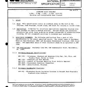 This specification covers an aluminum alloy in the form of die forgings, hand forgings, rolled rings, and stock for forging or rolled rings.