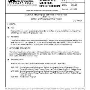 This specification covers an aluminum alloy in the form of die forgings, hand forgings, forged rings, rolled rings, and stock for forgings and rings.