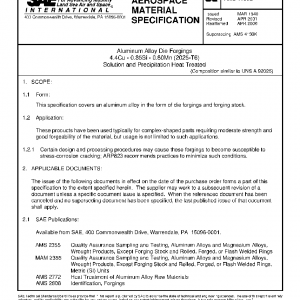 This specification covers an aluminum alloy in the form of die forgings and forging stock.