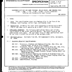 This specification covers an aluminum alloy in the form of die forgings, hand forgings, rolled rings, and forging stock.