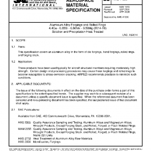 Aluminum Alloy Forgings and Rolled Rings 4.4Cu – 0.85Si – 0.80Mn – 0.50Mg (2014-T6) Solution and Precipitation Heat Treated
