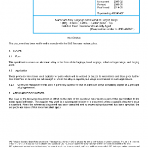 Aluminum Alloy Forgings and Rolled or Forged Rings 1.0Mg – 0.60Si – 0.28Cu – 0.20Cr (6061 – T4) Solution Heat Treated and Naturally Aged(NONCURRENT Feb 2005)