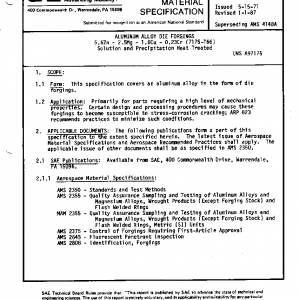 This specification covers an aluminum alloy in the form of die forgings.
