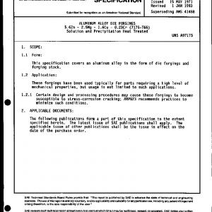 This specification covers an aluminum alloy in the form of die forgings and forging stock.