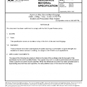Aluminum Alloy, Die and Hand Forgings 5.6Zn – 2.5Mg – 1.6Cu – 0.23Cr (7175-T74) Solution and Precipitation Heat Treated