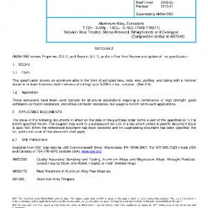 This specification covers an aluminum alloy in the form of extruded bars, rods, wire, profiles, and tubing with a nominal diameter or least thickness (wall thickness of tubing) up to 5.000 inches, inclusive. (See 8.4).