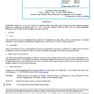 Aluminum Alloy, Extrusions, 7.7Zn – 2.4Mg – 1.6Cu – 0.16Cr (7049-T76511), Solution Heat Treated, Stress Relieved, Straightened, and Overaged