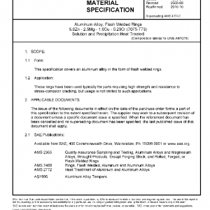 This specification covers an aluminum alloy in the form of flash welded rings.