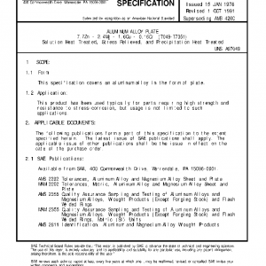ALUMINUM ALLOY PLATE 7.7Zn – 2.4Mg – 1.6Cu – 0.16Cr (7049-T7351) Solution Heat Treated, Stress Relieved, and Precipitation Heat Treated