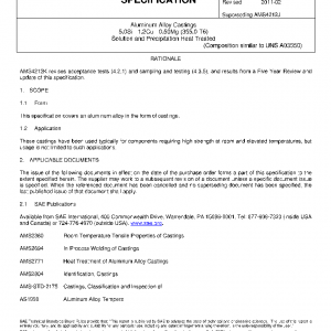 Aluminum Alloy Castings 5.0Si – 1.2Cu – 0.50Mg (355.0-T6) Solution and Precipitation Heat Treated