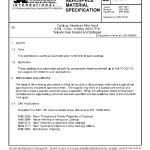 Castings, Aluminum Alloy Sand 5.0Si – 1.2Cu – 0.50Mg (355.0-T71) Solution Heat Treated and Stabilized