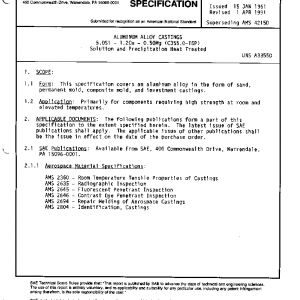 This specification covers an aluminum alloy in the form of sand, permanent mold, composite mold, and investment castings.