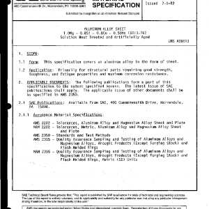 This specification covers an aluminum alloy in the form of sheet.