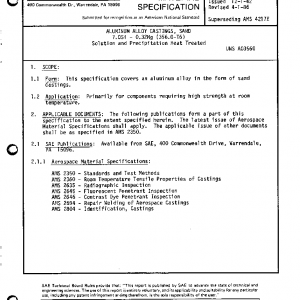 ALUMINUM ALLOY CASTINGS, SAND 7.0Si – 0.32Mg (356.0-T6) Solution and Precipitation Heat Treated