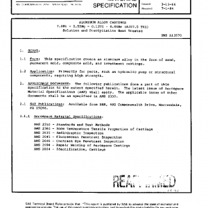 This specification covers an aluminum alloy in the form of sand, permanent mold, composite mold, and investment castings.