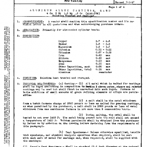 ALUMINUM ALLOY CASTINGS, SAND 4 Cu 2 Ni 1.5 Mg .2 Cr (A142-T75) Solution Treated and Overaged