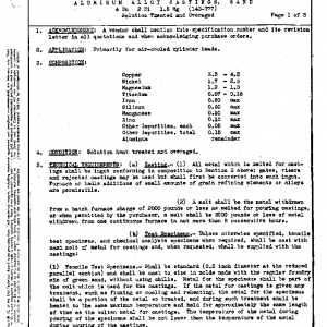 ALUMINUM ALLOT CASTINGS, SAND 4 Cu 2 Ni 1.5 Mg (142-T77) Solution Treated and Overaged