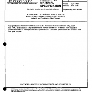 This specification has been ‘CANCELLED’ by the Aerospace Materials Division, SAE, as of April 1996. Alloy: A201.0-T6 UNS Number: A12010