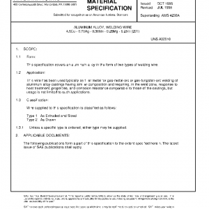 This specification covers an aluminum alloy in the form of two types of welding wire.