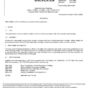 This specification covers an aluminum alloy in the form of sand, permanent mold, and composite mold castings.