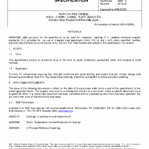 This specification covers an aluminum alloy in the form of sand, investment, permanent mold, and composite mold castings.