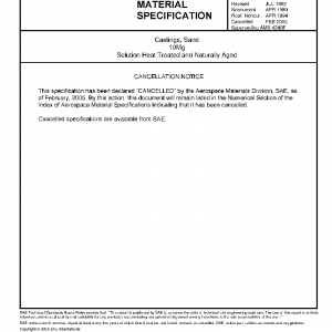 Castings, Sand, 10Mg, Solution Heat Treated and Naturally Aged (Cancelled Feb 2005)