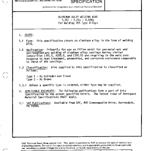 This specification covers an aluminum alloy in the form of welding wire.