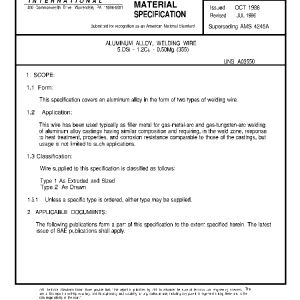 This specification covers an aluminum alloy in the form of two types of welding wire.