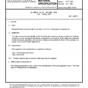 This specification covers an aluminum alloy in the form of two types of welding wire.