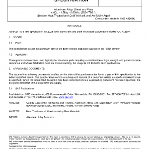 This specification covers an aluminum alloy in the form of sheet and plate supplied in the -T861 temper.