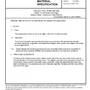 Aluminum Alloy, Sheet and Plate (2424-T3 Flat Sheet and Plate) Solution Heat Treated and Cold Worked