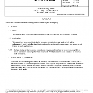Aluminum Alloy, Sheet 4.4Cu – 1.5Mg – 0.60Mn (2024-0) Annealed, Fine Grained