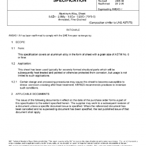 This specification covers an aluminum alloy in the form of sheet with a grain size of ASTM No. 6 or finer.