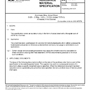 This specification covers an aluminum alloy in the form of alclad sheet with a fine-grain core of ASTM No. 6 or finer.