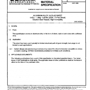 ALUMINUM ALLOY, ALCLAD SHEET 4.4Cu – 1.5Mg – 0.60Mn (2024; -T4 Flat Sheet) Solution Heat Treated, High Formability