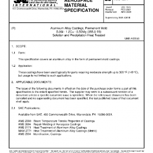 Aluminum Alloy Castings, Permanent Mold 5.0Si – 1.2Cu – 0.50Mg (355.0-T6) Solution and Precipitation Heat Treated