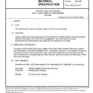 This specification covers an aluminum alloy in the form of die castings.