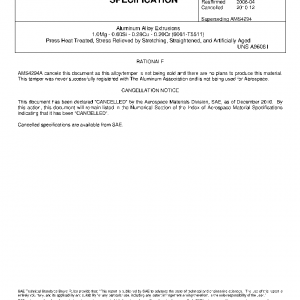 Aluminum Alloy Extrusions, 1.0Mg – 0.60Si – 0.28Cu – 0.20Cr (6061-T5511), Press Heat Treated, Stress Relieved by Stretching, Straightened, and Artificially Aged(Cancelled Dec 2010)