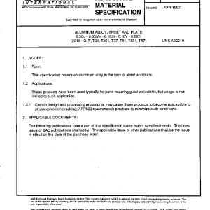 ALUMINUM ALLOY, SHEET AND PLATE 6.3Cu – 0.30Mn – 0.18Zr – 0.10V – 0.06Ti (2219 – O, F, T31, T351, T37, T81, T851, T87)