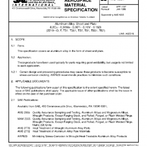 Aluminum Alloy, Sheet and Plate 6.3Cu – 0.30Mn – 0.06Ti – 0.10V – 0.18Zr (2219 – O, F, T31, T351, T37, T81, T851, T87)