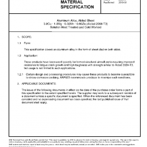 Aluminum Alloy, Alclad Sheet 3.8Cu – 1.0Mg – 0.30Mn – 0.60Zn (Alclad 2056-T3) Solution Heat Treated and Cold Worked
