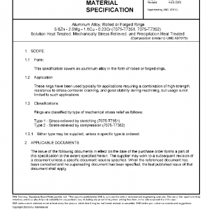 Aluminum Alloy, Rolled or Forged Rings 5.6Zn – 2.5Mg – 1.6Cu – 0.23Cr (7075-T7351, 7075-T7352) Solution Heat Treated, Mechanically Stress Relieved, and Precipitation Heat Treated